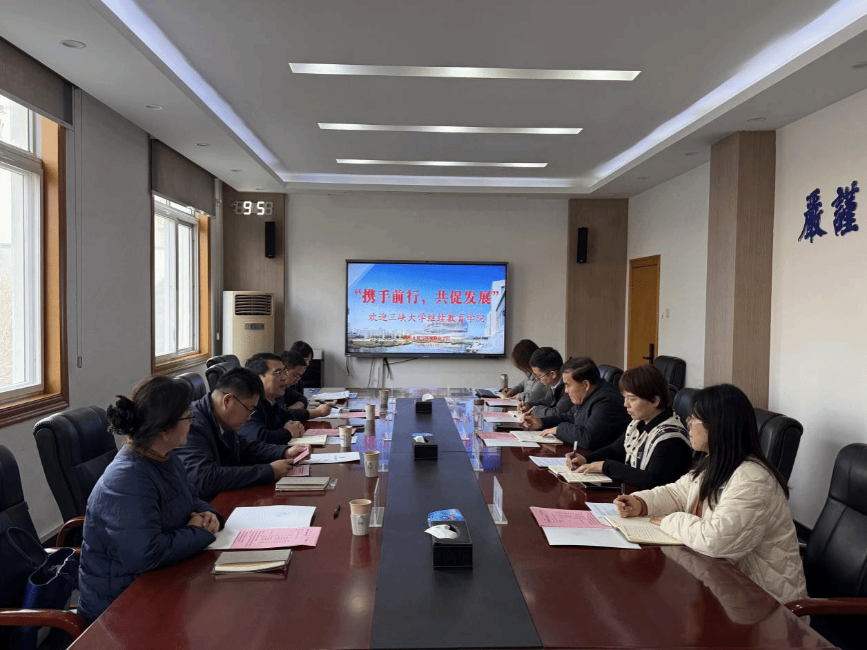 12月11日上午,三峡大学继续教育学院党总支书记、院长刘新华一行五人莅临我校,围绕继续教育工作开展调研交流。工作交流会以“携手前行,共促发展”为主题,在花园路校区行政楼三楼会议室召开。我校党委委员、副校级干部赵广杰,继续教育学院全体成员及水利工程学院副院长寇自洋参加会议,会议由继续教育学院院长马海艳主持。