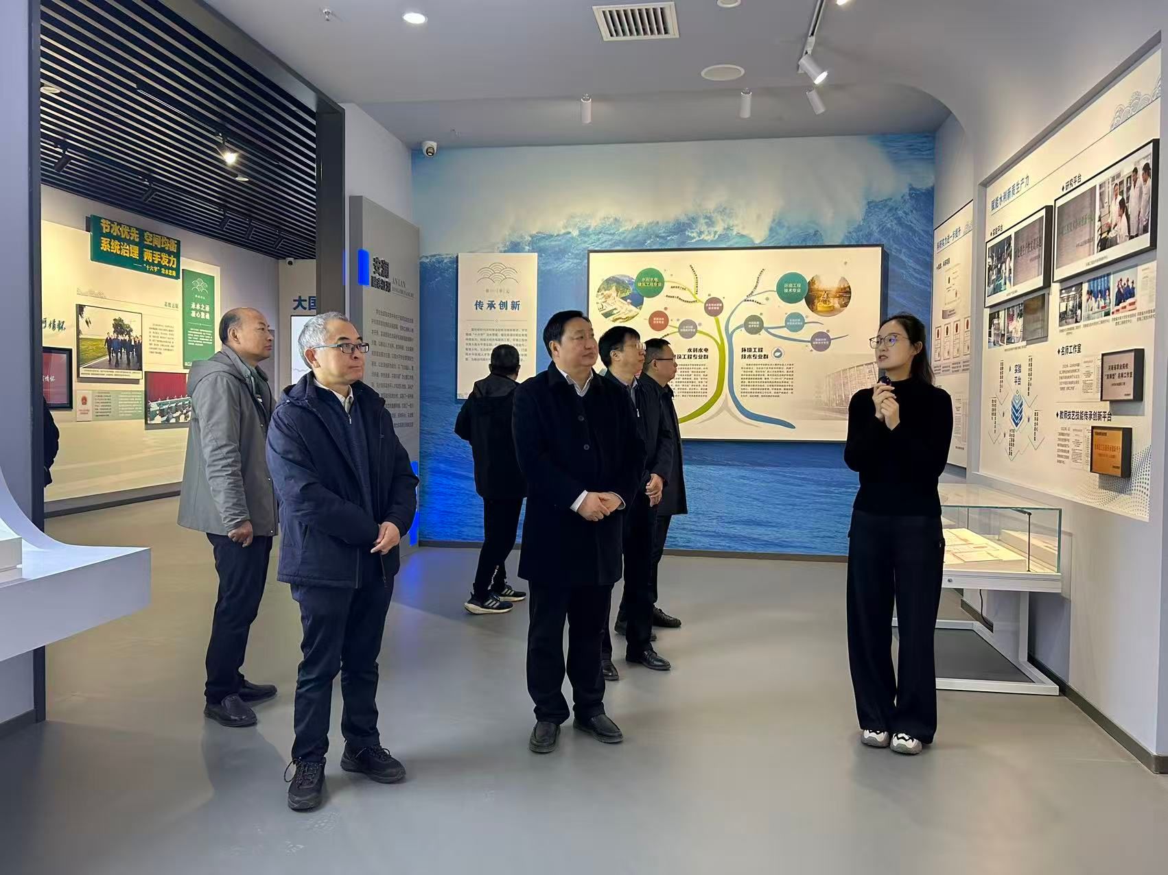 会后,校友企业家代表们参观了校园、水文化馆和校史馆,沉浸式感受母校的发展变迁与办学底蕴,并合影留念。