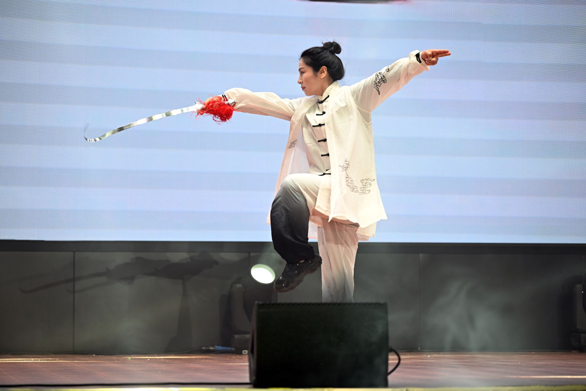 《运河风华》精心编排三大历史场景,串联隋朝开凿通济渠的壮举、当代卫河抗洪抢险的担当、大运河申遗成功十周年的辉煌,生动诠释大运河承载的历史底蕴与民族精神,尽显中华儿女坚韧不拔、开拓创新的精神内核。太极武术《刀剑流云·扇卷星河》更显中华传统文化之美,表演者动作舒展流畅、气韵贯通,刚柔并济间尽显太极神韵,传递和谐共生的文化内涵,让在场观众深切感受中华优秀传统文化的独特魅力。