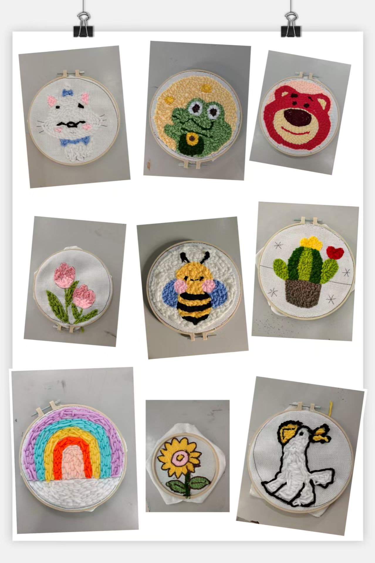 活动现场,工作人员为参与者发放制作材料,围绕戳针使用、毛线固定、图案填充等技法细致演示指导,帮助零基础同学快速掌握技巧。现场氛围温馨有序,同学们或互帮互助解决创作难题,或在基础模板上创新设计,亲手制作的成品均可作为纪念留存,大家在手工创作中感受传统技艺魅力,舒缓了学业压力。