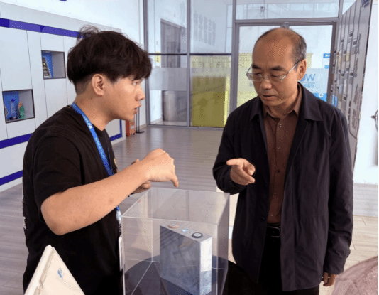 参观结束后,调研团队与正在企业实习的近20名机电工程学院学生进行了亲切座谈。座谈会上,同学们踊跃发言,分享了实习期间的收获、体会以及遇到的挑战。张国路认真聆听了同学们的发言,对同学们展现出的精神面貌表示肯定,并就同学们关心的专业学习与实践结合、职业规划等问题给予了耐心指导和鼓励,希望同学们珍惜实习机会,勤学苦练,提升综合能力。