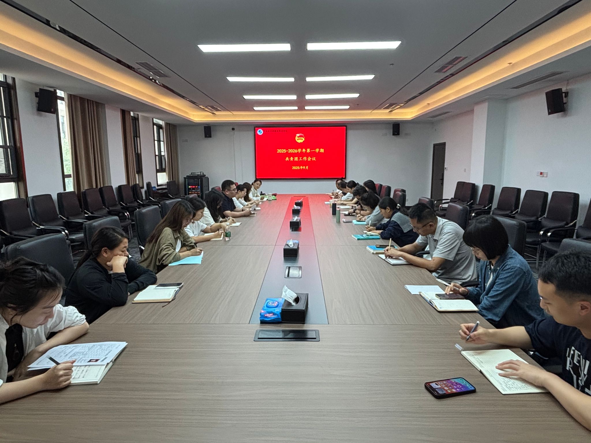 为推进新学期共青团工作有序高效开展,进一步明确工作方向,9月8日下午,我校在博思楼二楼会议室召开2025-2026学年第一学期共青团工作会议。校团委全体人员、各二级学院党总支副书记及团总支书记参加会议,会议由校团委书记刘彬主持。