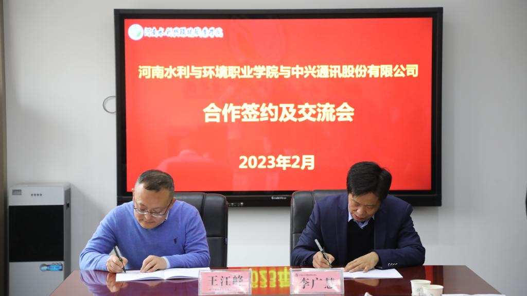 李广慧代表学校致辞,他首先对王江峰一行的到来表示热烈欢迎,对双方落实前期访企合作意向的实际行动给予充分的肯定。他强调,中兴通讯股份有限公司作为我国最大的通信设备上市公司、全球领先的综合通信解决方案提供商,技术科研水平优异,自动化程度领先,管理理念先进,希望通过扎实推进校企合作,有效提升人才培养质量和办学水平。学校将组建专门的管理团队,在招生、培养、就业各个阶段融入企业课程、企业文化,提升毕业生能力与岗位匹配度。期望双方能以此签约为契机,不断拓展合作领域,在技术研发、科研攻关等方面开展广泛深入的合作。